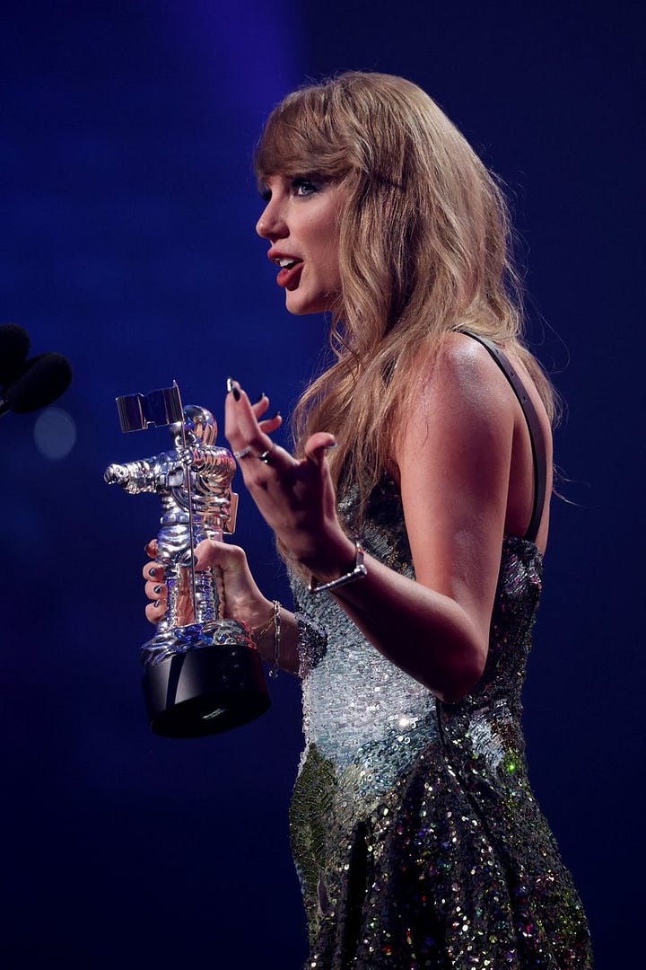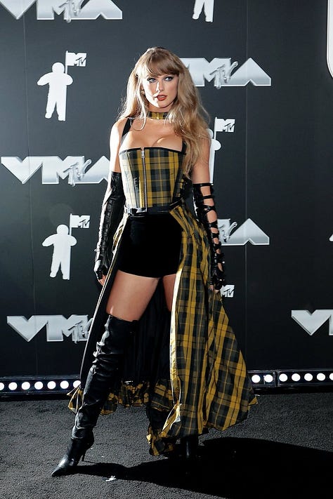 Taylor wore a THIRD dress for the 2024 VMA’s! This was for the after party. Again, it was giving Down Bad vibes… Here’s some pictures: